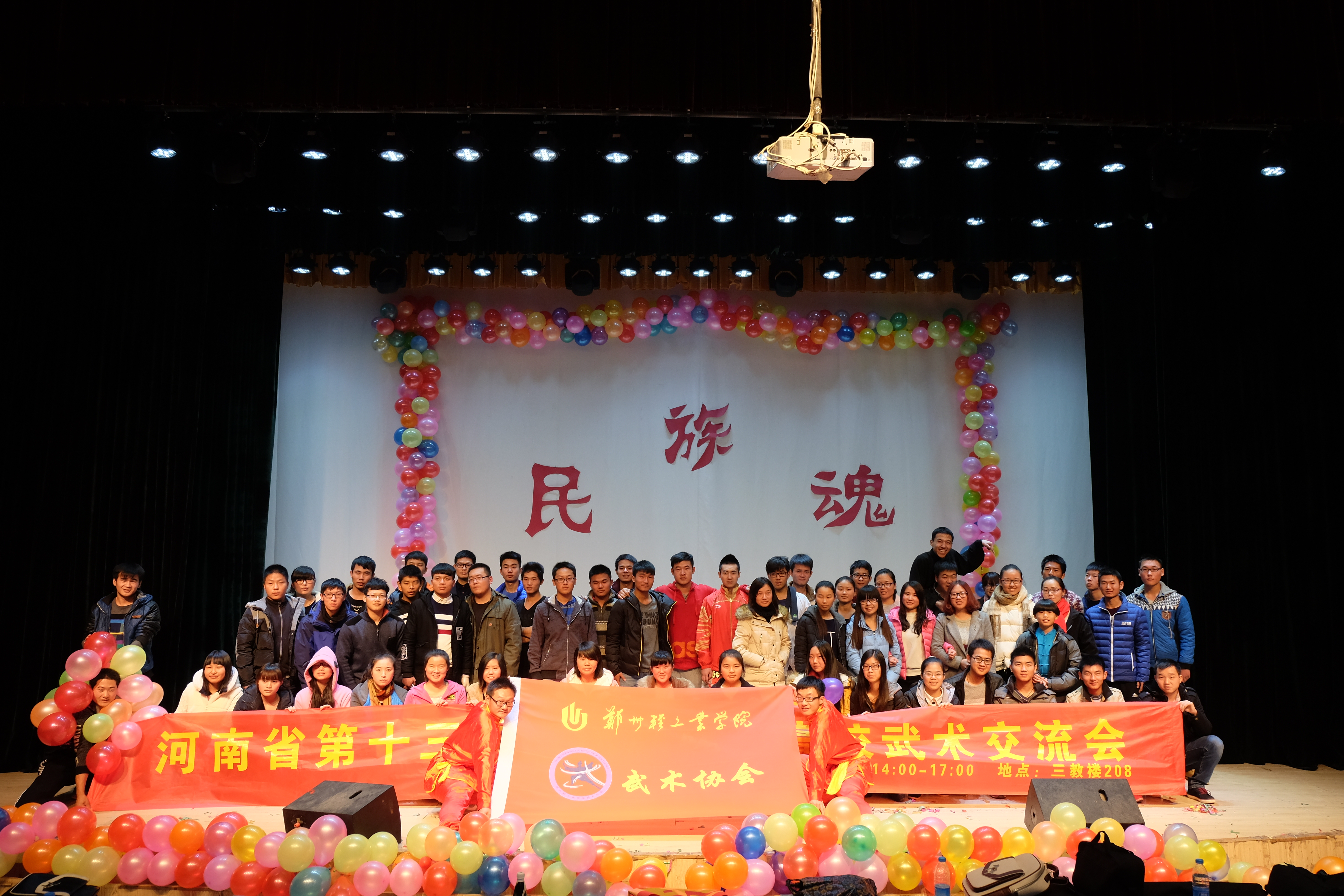 11月29日下午,由校团委主办,武术协会承办的第十三届“民族魂”武术交流会在郑州轻工业学院科学校区三教楼208室隆重举行。出席本次活动的嘉宾有武术协会指导老师王忠政、武术协会12级、13级会长和大学生社团联合会代表成员、郑州大学武术协会、郑州科技学院武术协会、河南牧业经济学院武术协会等其他高校武术协会代表人员及本校武术协会全体成员。本届活动主要以“丰富校园文化生活,发扬民族传统文化,弘扬中华武术精神”为主题。