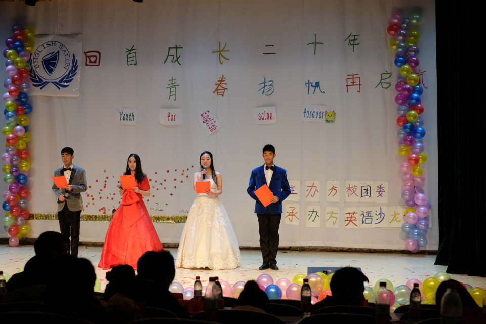 时光匆匆,转眼间,英语沙龙协会已走过了二十个春夏秋冬。11月20日晚,由大学生社团联合会主办,英语沙龙协会承办的20周年庆在三教楼208教室盛大举行。本次晚会邀请了英语沙龙协会上任主席团成员、东风校区英语沙龙协会会长、各社团会长等嘉宾。全校近500名同学观看了晚会。 此次晚会的节目内容形式多样,丰富多彩。开场曲《喜欢你》将一片欢庆融洽的气氛带入了现场,让同学们感到浓郁的欢乐气息;小品《非诚勿扰》、《监考老师》诙谐生动的表演引发了同学们的阵阵笑声;交谊舞等舞蹈表演美轮美奂,深受观众们的喜爱。其中,一组歌曲串烧将此次晚会推向了高潮,赢得了现场的一阵阵掌声,还有诸多节目也受到了同学们的一致好评。掌声和呼叫声此起彼伏,台上台下成了一片激情洋溢的海洋,晚会全程高潮迭起,热闹非凡。 英语沙龙协会以为大家英语学习提供平台为宗旨,本着认真、负责、团结、有爱、互助的理念为全校爱好英语的同学服务。二十年,对英语沙龙协会来说既是种激励,更是种鞭策。此次晚会彰显了英语沙龙协会悠久的历史及浓厚底蕴,进一步提升了英语沙龙协会在校园的影响力,有利于进一步宣传校园社团文化,构建良好的校园学习氛围,并为各协会及会员间的交流与合作构建桥梁,为英语沙龙协会成员展示自我风采提供了宝贵机会,充分调动了广大会员的活动积极性,翻开了协会发展的新篇章。