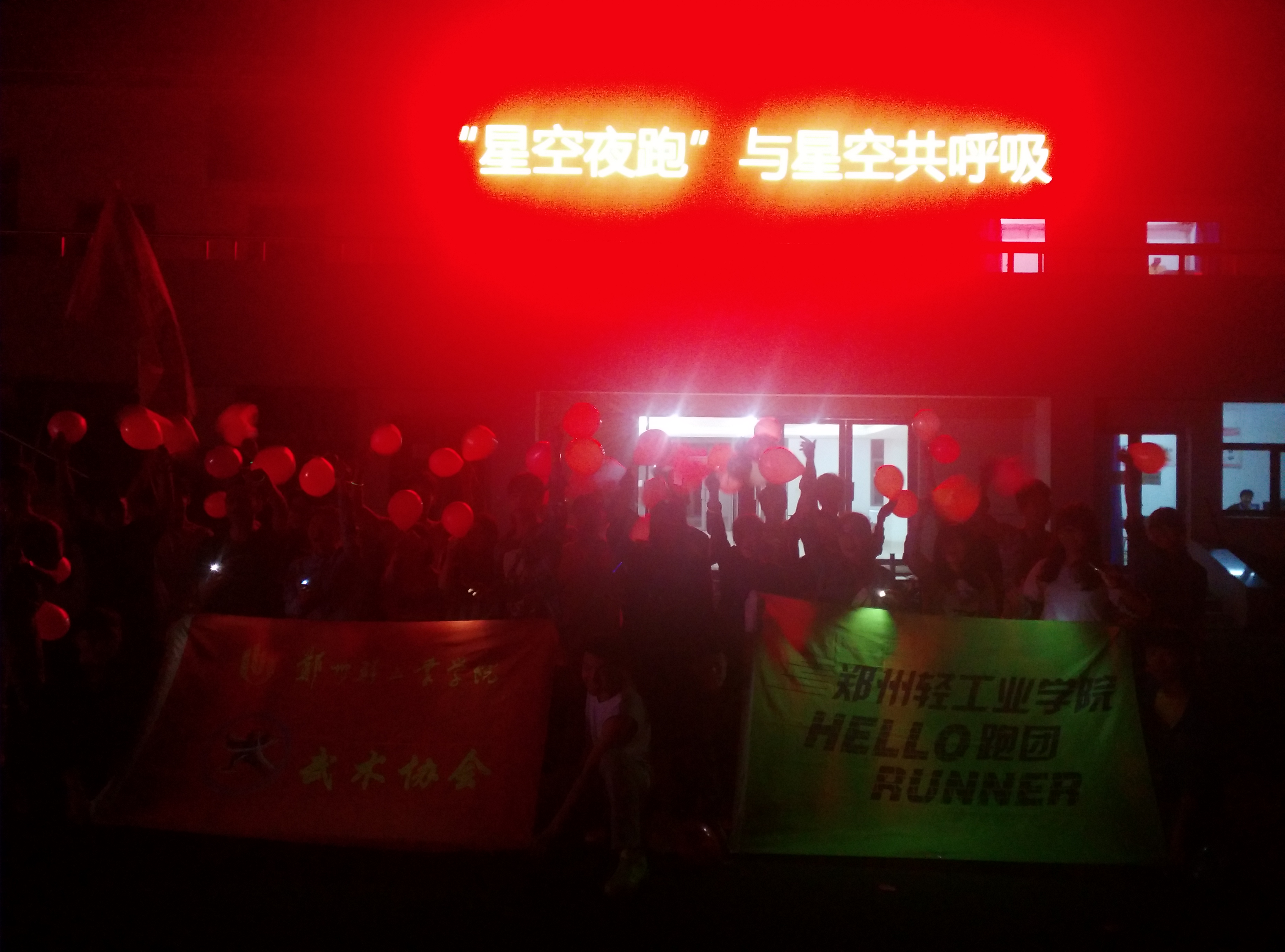 4月17日晚,由校团委主办,武术协会、Hello Runner跑团共同承办的星空夜跑活动在体育场正式开始。此次活动主要由武术协会会长林静、Hello Runner跑团会长马鑫负责,各干部以及干事担任各项职责。本次活动面向全校师生,众多同学积极参与到活动中来。 星空夜跑是一个在跑步的基础上加入了荧光、社团携手等元素的活动,这不仅丰富了跑步的内容,也大大增加了跑步的趣味性,对提高同学们的跑步积极性有很大的帮助。本次活动共持续两天,主要包括以下几个环节。首先是签到,活动当天各工作人员提前到场并签到。其次是在活动开始前,工作人员对参与者进行引导,确保大家到达正确地点,由工作人员组织列队。接下来是跑步环节,列好队后,由教练带领大家慢跑。在大家跑步期间,由武术协会网络部和跑团策划部的同学随时拍照并发布微博。在跑步结束后,大家纷纷在宣传条幅上签字留念。 盎然的春季即将结束,火热的夏季将要到来,此时的星空夜跑正好给了同学们一个契机,让同学们意识到是时候穿上轻便的运动服去锻炼了。本次活动意在体现大学生健康、阳光的精神面貌,丰富同学们的课余生活,提高同学们的身体素质,强健体魄,为同学们的长远发展提供坚实的健康基础。还在等什么?出发吧,大学生!