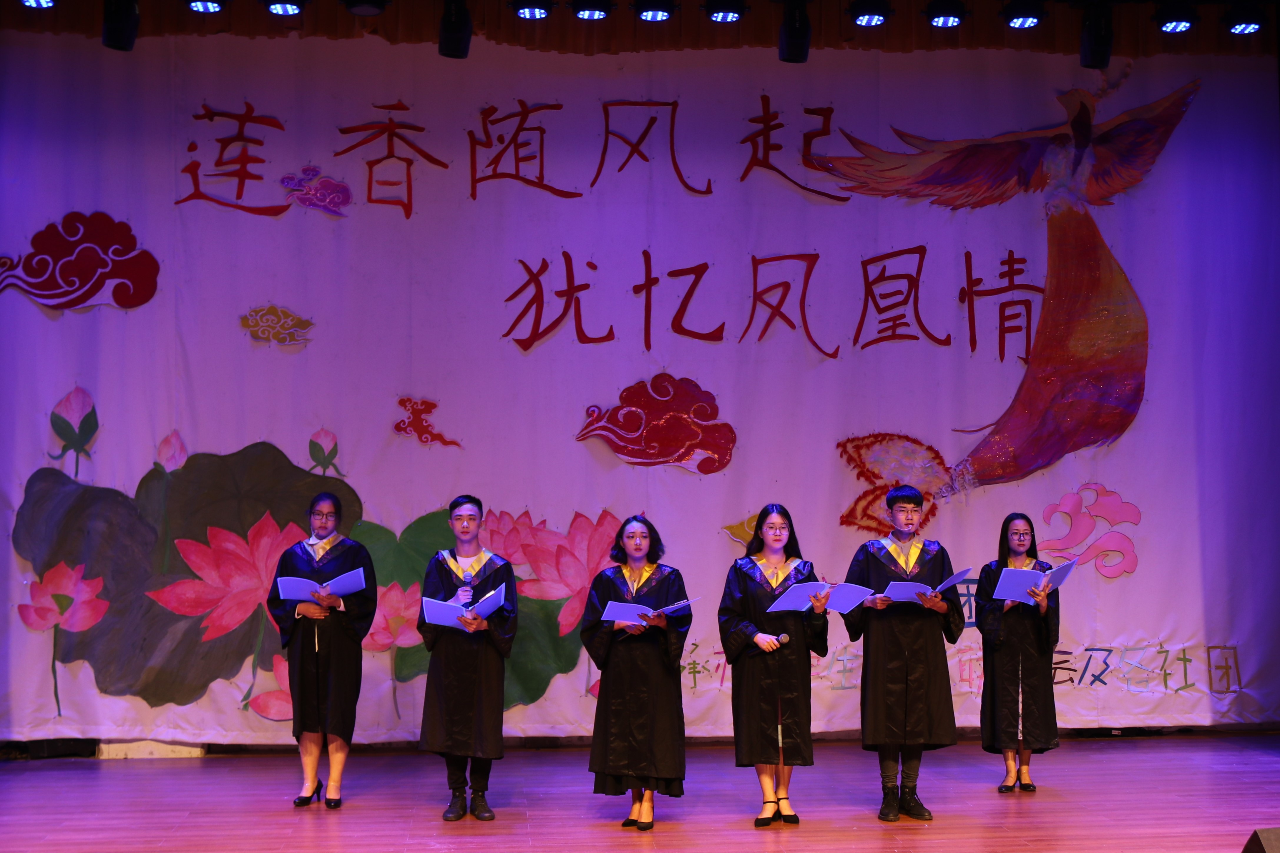 5月19日晚上,由校团委主办、大学生社团联合会及各社团承办的以“莲香随风起,犹忆凤凰情”为主题的社团社联欢送2018届毕业生文艺汇演在郑州轻工业学院科学校区三教楼208室隆重举办。本次活动有幸请到校团委办公室主任王银峰老师莅临观看。各学生组织、各社团代表,社联全体成员及科学校区众多学生观看了此次文艺汇演。截止发稿,微信消息发送量已达1000余条,2000余人通过微博直播观看了本次晚会,反响强烈。 5月19日晚6点,经过社团社联成员一天紧张而又精心的准备后,汇演开始时间临近。14级社团社联毕业生陆续来到了三教楼外,在签名墙上留下自己的名字。208室的大屏幕上滚动播放着社团社联精心为学长学姐准备的祝福视频。一时间,“工作顺利”、“身体健康”、“常回来看看”、“社团是你们永远的家”等这些发自肺腑的话温暖着14级社团社联人…… 晚6点30分,在雄浑的音乐声中,14级社团社联毕业生代表在旗手的引领下,缓缓踏上鲜艳的红毯,穿过会场,登上舞台。现场座无虚席,掌声,欢呼声此起彼伏。林立的旗帜旁,他们互相诉说着留恋与不舍之情。大学生社团联合会第十八届副秘书长钱星伊、青年志愿者协会14级书记李爽、英语沙龙协会副会长韩晓健分别作为毕业生代表发言,表达了对这四年时间内社团社联工作的感慨与怀念,惋惜着时光匆匆并表示对今后的社团社联工作充满期望。随后各社团代表为毕业生赠送了精心准备的礼物,校团委办公室主任王银峰老师上台与毕业生们合影留念,一时间文艺汇演现场弥漫着温馨的气息。 7时,文艺汇演在充满青春活力的开场舞中正式拉开帷幕,带动了所有人的热情,一幕幕精彩绝伦的表演既展示出了社团人的精神风貌,也展现了对即将毕业的大四毕业生们的依依惜别之情和轻院学生积极昂扬的青春气息。节目开始由演讲与口才协会带来朗诵《借我芳华不逝》,为毕业生们完美诠释了他们此时此刻的心情-时光犹如白驹过隙,回头看时早已物是人非。接着是社联办公室带来的节目《这不是选秀》,将会场氛围进一步推向高潮。然后是青年志愿者协会带来的手语节目《那些年的期待》,无声的肢体语言令在场的每一位观众都屏气凝神,认真体会着其中蕴含的意义。社联外联部的小伙伴们带来杯子舞《稻香》更是以独特的方式惊艳了全场。由羽毛球协会带来的小品《羽你相遇》更是用两个人的成长经历将一幕幕从前的经历在观众面前呈现。社联组织部的小品《最后一课》用只言片语便表达了毕业生们浓浓的留恋与惜别之情。除了这些,大学生社团联合会主席团带来的彩蛋更是令全场沸腾,他们用剪影拼接出大学时光,使观众们感觉仿佛眼前的一幕幕场景都是那么的真实。同时精彩的舞蹈与歌声也引爆了全场气氛。乒乓球协会的《私奔》、动漫协会的宅舞+wota艺表演《dancing stars on me+sparkling daydream》、交谊舞协会的舞蹈《遇见》、社联监察部谢晓筱的二胡表演——《赛马》等众多美妙的歌曲与优雅的舞蹈,让毕业生们在禁不住连连喝彩的同时也感慨青春是如此的绚丽。当晚的微博墙上祝福与感慨不断闪现,两次微信抽奖也将文艺汇演氛围带到一个又一个高潮。文艺汇演在社联的小伙伴们的歌曲串烧——《青春毕业季》中落下帷幕,大家纷纷上台与毕业生们拍照合影,想留住这最美的瞬间。 光阴似箭,岁月如梭,四年时光里的他们,相伴左右。时光荏苒,白驹过隙,青春行走在时间的河岸,渐行渐远记忆的长河中,他们留下一长串欢笑与悲伤的浪花。未来的天空里,回忆和思念是一片飘逸动人的彩霞。通过文艺汇演,广大社团成员用他们的真情和才艺诠释了我校社团多才多艺、自信自强的精神风貌和锐意创新、拥抱未来的不懈追求,更促进了广大毕业生之间的相互交流,展现我校学生进取向上、青春昂扬的精神风貌,同时也加深了毕业生们对母校的热爱。衷心祝愿我校社团工作能承前启后、继往开来,衷心祝愿2014级全体毕业生一路顺风、前程似锦!