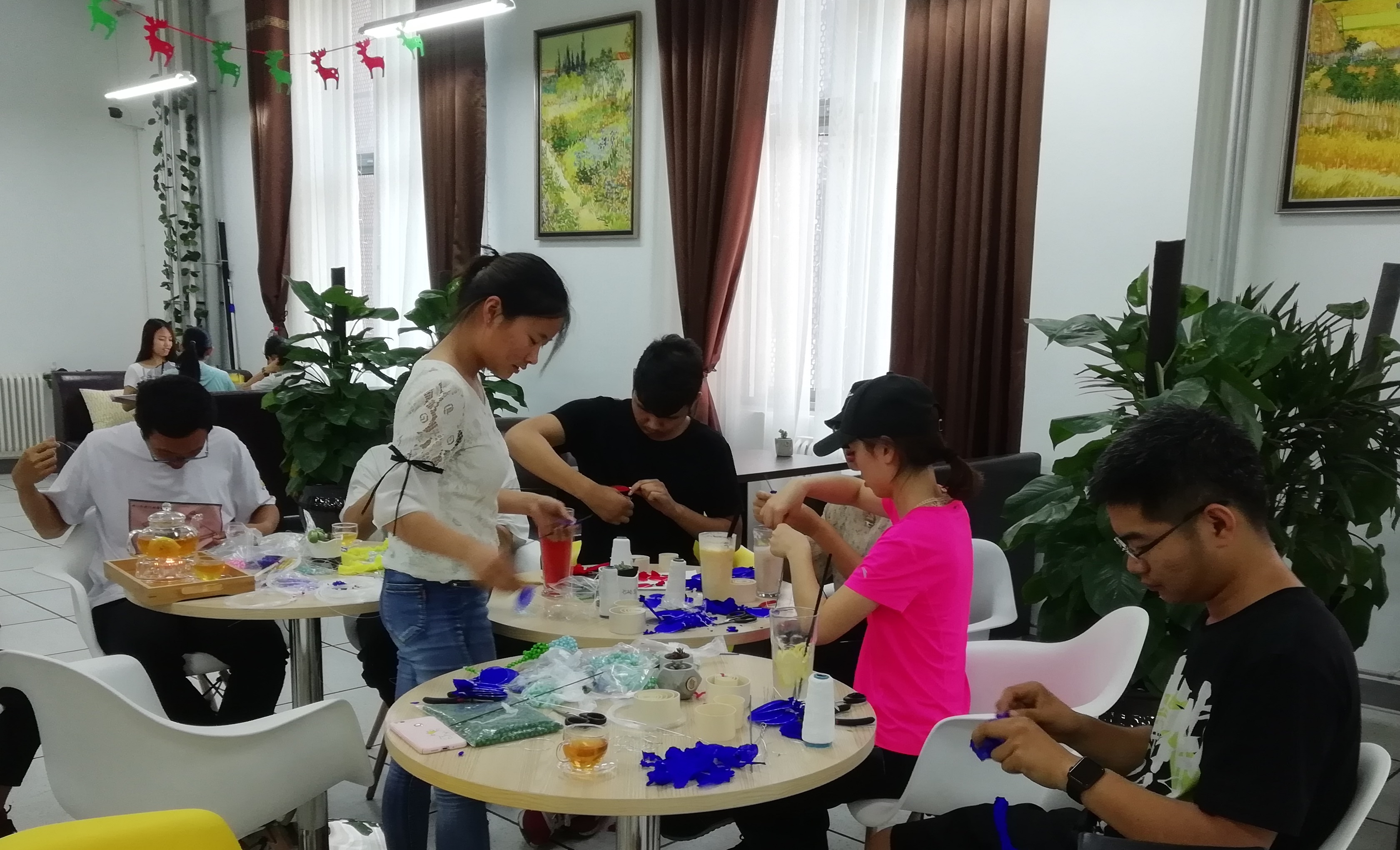 为激发大家对艺术品的兴趣,提高大家的动手能力,营造有艺术气息的校园文化氛围。5月31日下午,由花艺协会主办的夏之艺创意手工教学活动在工程楼乐吧咖啡屋成功举办。本次活动面向全校师生,许多学生参与了本次活动,学习手工,做出属于自己的手工艺品。 活动开始前,工作人员到位,与乐吧咖啡屋工作人员进行协商,并布置场地,准备活动所需材料,技术人员到位,为教学活动做准备。下午两点,活动正式开始。首先由花艺协会副会长肖建良进行讲话,对来参与本次活动的学生表示欢迎,希望大家可以拥有一个愉快的下午时光。本次活动的手工形式有:折纸,串珠,丝网花。活动开始后,同学们纷纷选择自己感兴趣的手工艺品,进行学习。学习过程中,同学们积极向协会技术人员请教,认真学习,协会技术人员也耐心向同学们讲解,认真教学。下午五点半,活动结束,副会长肖建良进行总结,感谢大家的到来,对同学们的认真努力做出了肯定,并鼓励大家多做手工,增强自己的动手能力,也欢迎大家与花艺协会人员多多交流。最后,大家一起在乐吧咖啡屋一楼和咖啡屋工作人员合影留念。经过三个半小时的学习,同学们都学会了一种、两种甚至更多种的手工艺品,并做出了属于自己的手工艺品。至此,本次夏之艺手工创意教学活动圆满结束。 本次活动的成功举办,更多的同学加入了学习手工的行列,增加了同学们对艺术品的关注与了解,激发了大家对艺术品设计与制作的兴趣,增强了同学们的动手能力,丰富了同学们的课余生活,同时展现了艺术的魅力,为营造良好的校园艺术氛围做出了良好贡献。