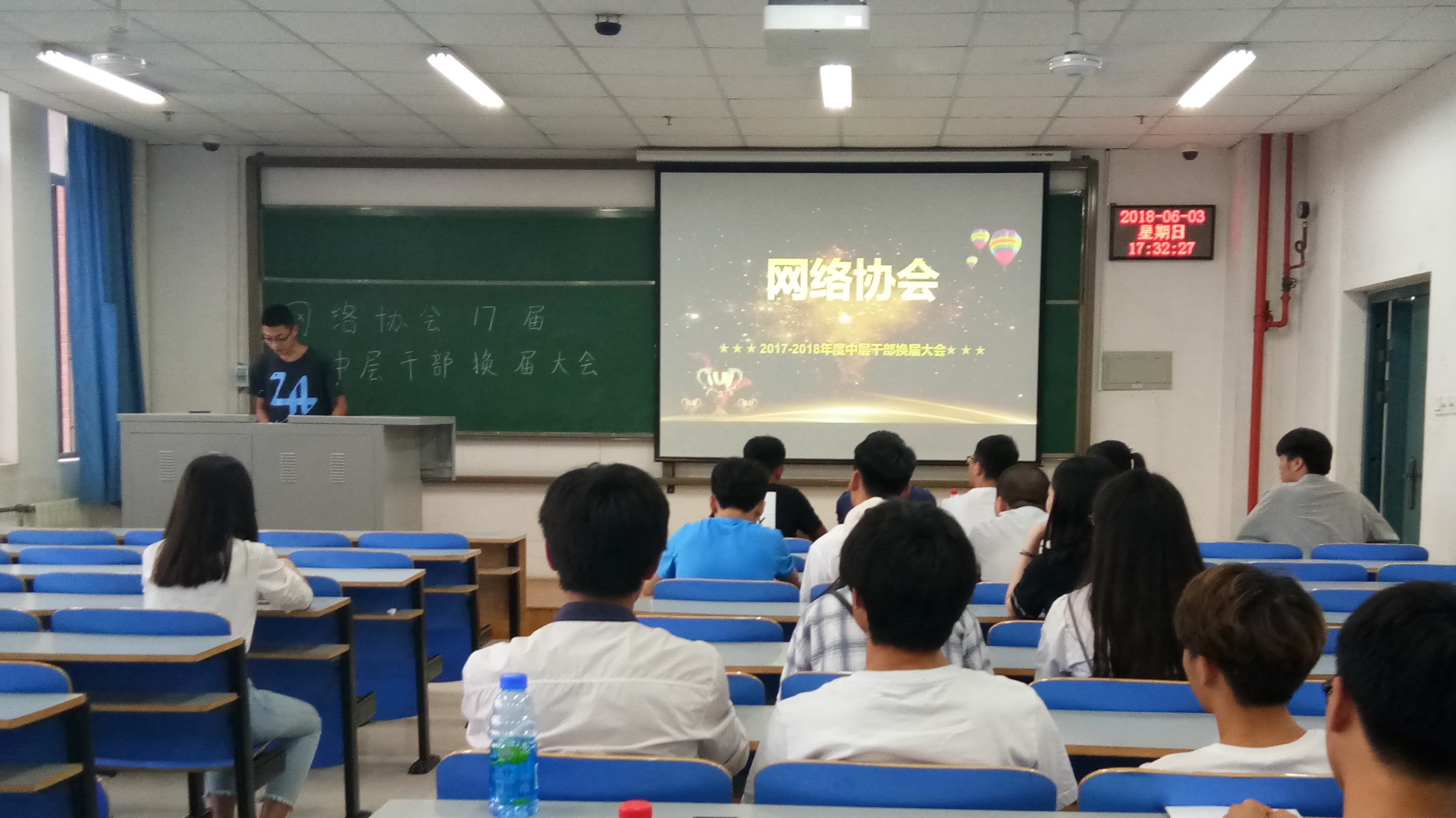 6月3日下午由大学生社团联合会主办,郑州轻工业学院网络协会承办的网络协会中层干部换届大会在二教708举行。参加本次大会的人员有网络协会副会长姚松茂,副书记王萍原,技术部副部长田昊、侯泽翔,外联部副部长曹天瑞,组织部副部长黄甜,宣传部副部长杜浩楠、王宇,秘书部副部长徐明慧以及17级骨干干事。本次会议邀请嘉宾有英语沙龙协会会长武守稳,电子科技协会秘书长刘瑞,交谊舞协会会长田寅,环保协会副会长副会长江千峰,演讲与口才协会网宣部部长张文杰。由秘书部副部长徐明慧担任本次大会的主持人。 大会开始,首先主持人代表协会对到场的嘉宾表示由衷地欢迎。开场白过后,进入竞选流程。参加竞选的人员演讲顺序依次为技术部17级干事董育恒,新媒体部17级干事郭家兴,秘书部17级干事徐一丹,组织部17级干事岳凯,宣传部17级干事刘旭。董育恒同学竞选的职位是网络协会技术部副部长,他详细分析了技术部在网络协会发展中的地位和作用并展望了自己如果竞选成功后想做的事情,声音不大但很有力。郭家兴同学竞选的职位是网络协会新媒体部副部长,首先是激情澎湃的自己介绍,紧跟着阐述了自己参加活动的感想和在活动中的收获。徐一丹同学竞选的职位是秘书部副部长,她说通过参加网络协会的活动交到了更多的朋友学习到了更多技能,想为协会添砖加瓦。岳凯同学竞选的职位是组织部副部长,他用自己的观点说明了组织部的职责与意义并祝愿网络协会越来越好。刘旭同学竞选的职务是宣传部副部长,他说宣传部是每个部门的核心部门,他相信自己能够担任此职位。竞选者们的发言既精彩又激烈,到场的嘉宾们对每位竞选者都给予了相应的点评和建议。会议最后,主持人代表网络协会再次由衷地感谢嘉宾们的到来。网络协会所有成员一起合影留念。 本次会议将产生网络协会的新生代,为网络协会注入新鲜的血液。在换届大会中,展示了网络协会成员的风彩,体现了网络协会的家文化。协会成员不仅增加了自己的上台经验,还锻炼了自己应对嘉宾提问环节的能力。除此之外,本次大会的开展还增强了网络协会的凝聚力和影响力。网络协会将严格遵守新的章程,履行协会义务。相信网络协会将在所有成员的共同努力下越来越优秀。
