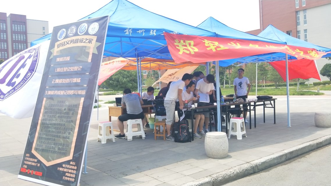 为让更多同学了解郑轻义务维修之家,也为更好地服务广大师生及学校周边群众,6月23、24日,郑轻义务维修之家在活动中心楼西侧图书馆北面举办了电脑和各类电子器件义务维修活动。电子科技协会、计算机爱好者协会、网络协会、无线电协会部分16、17级干部参加了本次活动。 23日上午8:30,各个协会的值班人员将桌子、椅子、帐篷等物品搬至活动地点,整理完毕后,本次义务维修活动于上午九点正式开始并由各个协会的值班人员按照顺序在活动地点值班。活动开始不久就有许多同学和学校周边居民带着他们出现问题的电子产品前来求助,其中包括电脑、充电宝、电风扇等。工作人员在登记处在对前来寻求帮助的人进行登记之后,由技术人员开始对这些电子产品进行维修。协会成员分工明确,登记、维修等过程都进行得有条不紊。协会成员也都一一耐心回答了同学们所提出的问题。当然其中也有许多棘手的问题,对部分短时间内无法解决的电子产品问题,在征得其所有者同意后,维修人员将这些电子产品带到电子科技协会办公室,即工程训练中心321室进行维修。本次义务维修活动持续了一天半的时间,于6月24日十二点结束。维修人员整理好未解决的问题以及协会的工具,于12:30将桌子、椅子、帐篷搬回。本次活动圆满结束。 举办本次活动,协会成员不仅增长了经验,也增强了动手的能力,协会成员之间的配合也更加默契。对郑轻义务维修之家而言,本次活动的开展提高了郑轻义务维修之家在学校的知名度和影响力,更促进了组成义务维修之家的各个协会之间的交流,对各个协会的发展有着积极的意义。相信在电子科技协会、计算机爱好者协会、网络协会、无线电协会各成员的共同努力下,郑轻义务维修之家将开展更多丰富精彩的活动,越办越好。